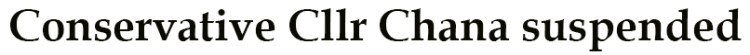 The Conservative Party will investigate Cllr Chana under the Code of Conduct for Conservative Party Representatives. After a review by an Investigating Officer, a panel appointed by the Party Chairman will examine the complaint and the evidence that has been gathered. This panel must include at least one independent person.