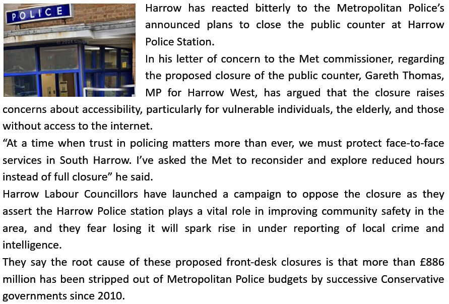 Proposed closure of Harrow Police station front desk, resented Posted byhmgupdatedAug 4, 2025Aug 4, 2025Posted inNewsTags:community, Harrow Police Station Share this: Click to share on X (Opens in new window) X Click to share on Facebook (Opens in new window) Facebook Like Loading... Related